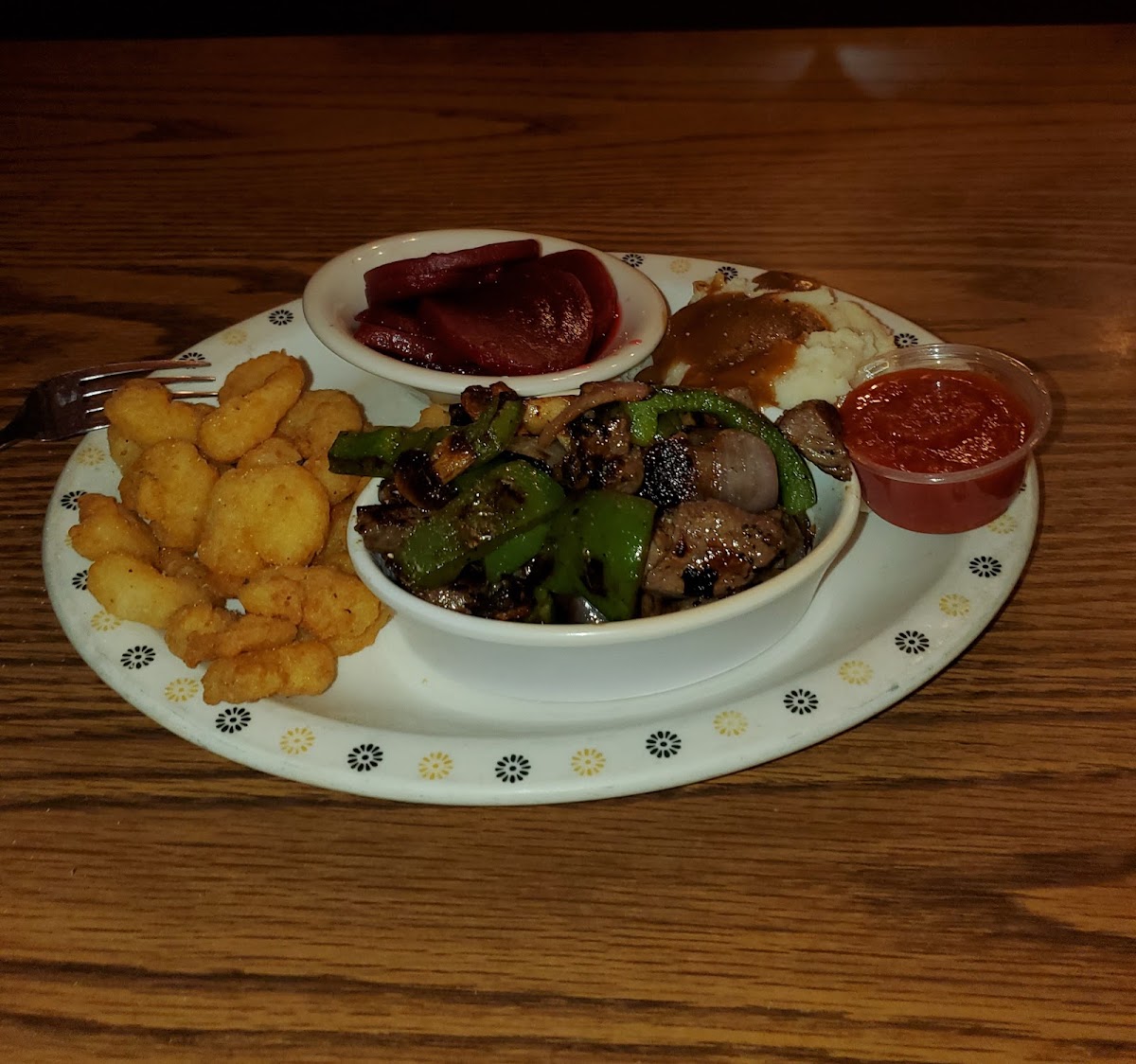 Four of us stopped in for lunch on our way to a girl's weekend. I was the one who suggested the Chuck Wagon even though I had never eaten at this one. Happily it turned out great! Two of us had the steak tips, one the chicken cordon bleu and one the ribeye all with different sides. Everything was delicious. My friends are still talking about it!